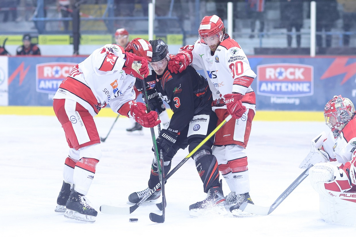 In das letzte Drittel starteten die Hausherren in Unterzahl – und mit einem schnellen Treffer. Adam Domogalla veredelte einen Konter und brachte sein Team wieder auf 2:3 ran (41.). Wenig später dämpfte Valery Trabucco die Hoffnungen mit dem 2:4 allerdings schon wieder (44.). Die Scorpions verwalteten im Anschluss die Führung und legten noch einmal nach, als Kai Kristian für einen sechsten Feldspieler vom Eis genommen wurde (58.).