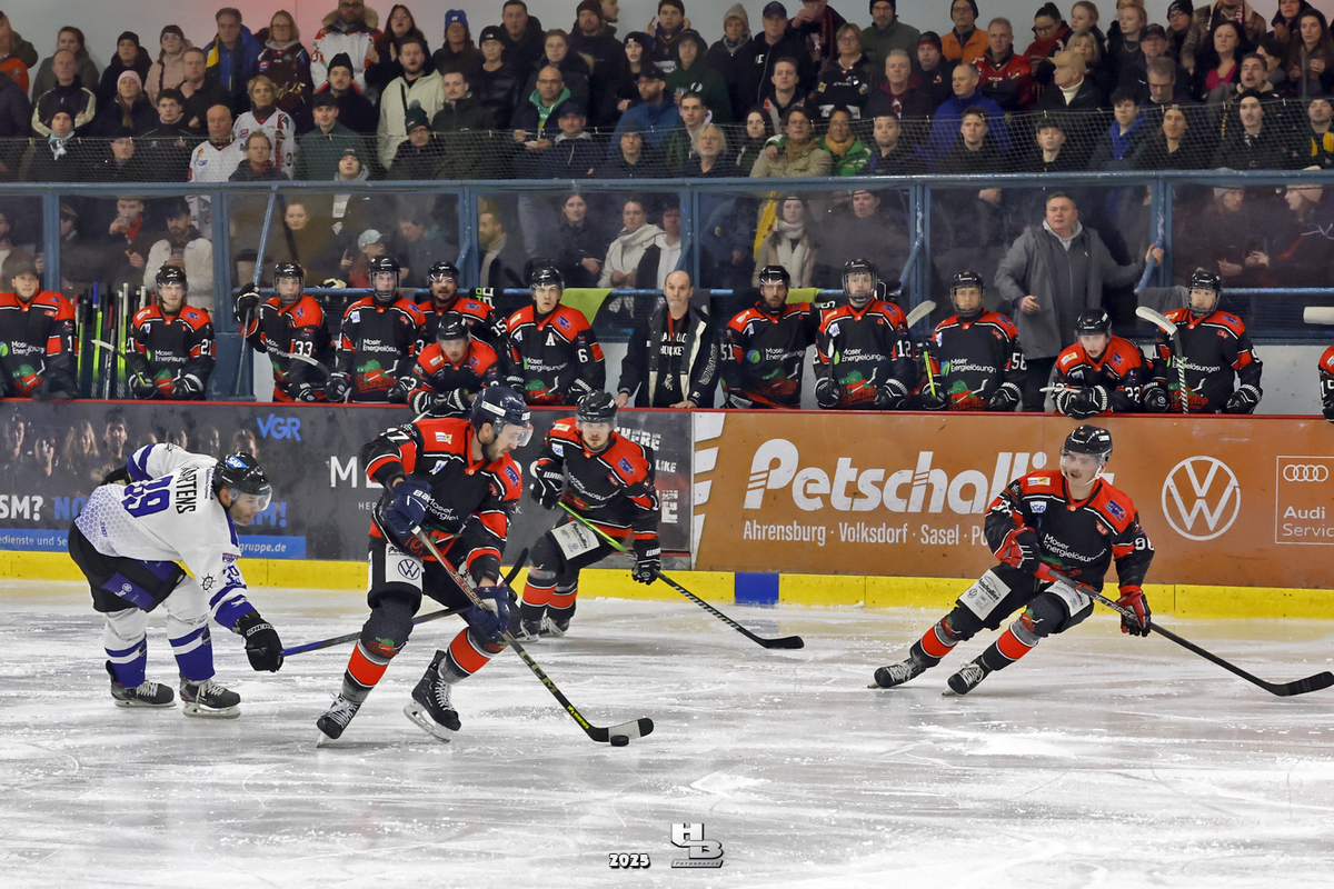 Riku Lindroos war auch heute wieder ein wichtiger Rückhalt für die Mannschaft. Als dann Tauno Zobel in der 14. Minute vom Eis musste und es mit 4 gegen 4 gespielt wurde, erzielte Miguel Book auf Vorarbeit von Filip Kriz und Vladislav Balakuns den Ausgleichstreffer zum 1:1. So ging es dann auch in die erste Pause des Abends.