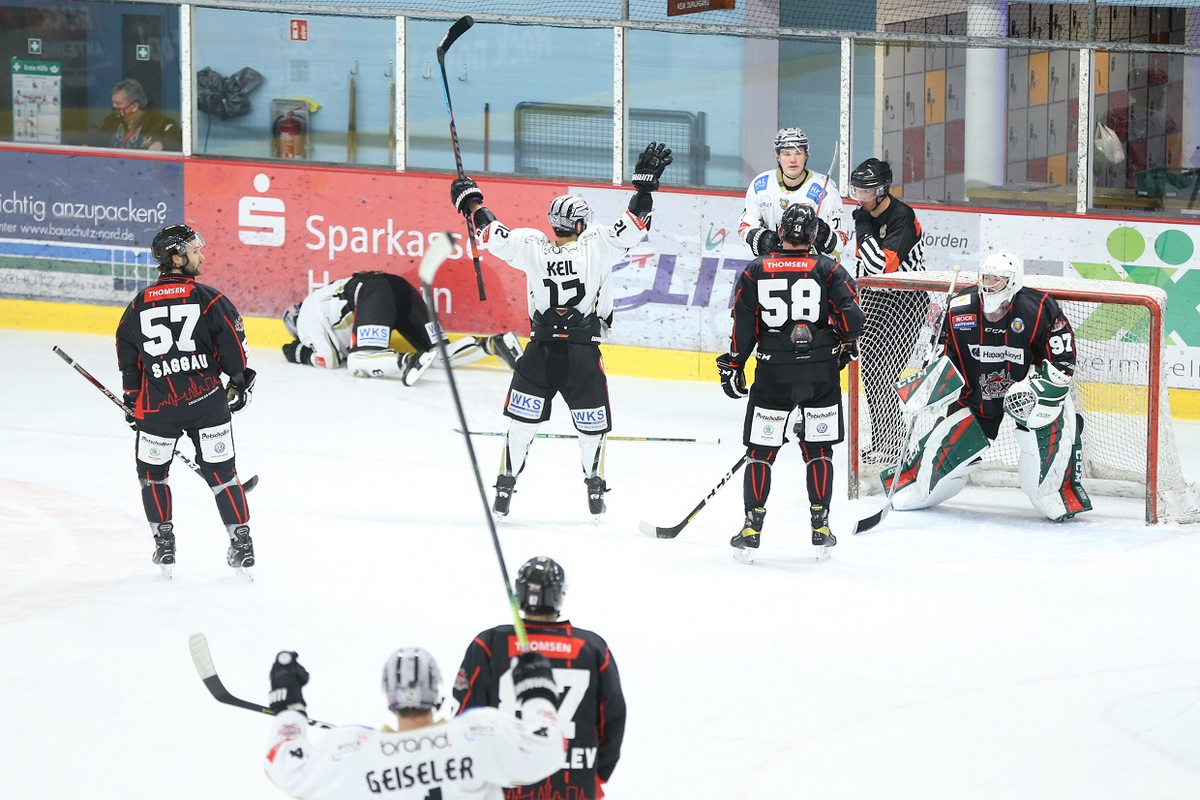 Dennoch kamen die Spieler um Kapitän Norman Martens gut in die Partie und steckten auch den frühen Rückstand durch Arnoldas Bosas weg(4.). Ein Schlagschuss von Yannis Walch egalisierte die Führung (8.) und eine feine Kombination von Patrick Saggau, Thomas Zuravlev und Dominik Lascheit brachte den Hausherren die Führung (8.). Letzterer erzielte das 2:1. In Unterzahl ging die Führung allerdings noch vor der Pause wieder abhanden. Kyle Beach spitzelte die Scheibe aus dem Gedränge vor dem Tor über die Linie (17.).
